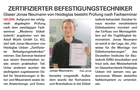 07. August 2017 Jonas Neumann ist zertifizierter Befestigungstechniker tagPlaceholderTags: 2017, nachwuchsförderung
