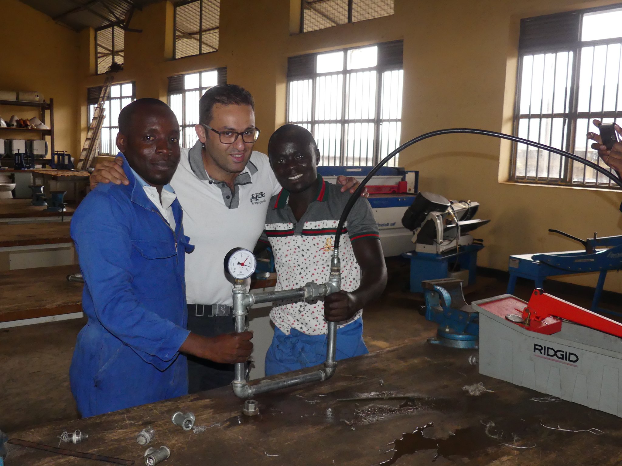 Dieses Mal war Tanja Neumann als Fachkraft für Arbeitssicherheit in Ruanda an zwei Stationen unterwegs, zunächst im Integrated Polytechnic Regional College (IPRC) Gishari, das etwa 50 Kilometer von der Hauptstadt Kigali entfernt liegt. Ziel dieses Einsatzes war es, gemeinsam mit dem Installations- und Heizungsbaumeister Kürsat Tül, die praktischen Fähigkeiten der Lehrer sowie die der Mitarbeiter von ortsansässigen Firmen im Sanitär-Bereich zu stärken. Außerdem sollten die Teilnehmer für die Themen Arbeitssicherheit und Gesundheitsschutz sensibilisiert werden. Die vierzehn Männer waren alle sehr motiviert und darin bestrebt, ihr Wissen zu erweitern.