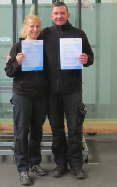 Bei der Versammlung der Glaser-Innung Niedersachsen in Uslar erhielten Tanja und Thorsten Neumann viele Informationen, u.a. zu Asbest im Kitt und den Richtlinien zur visuellen Glasqualität.